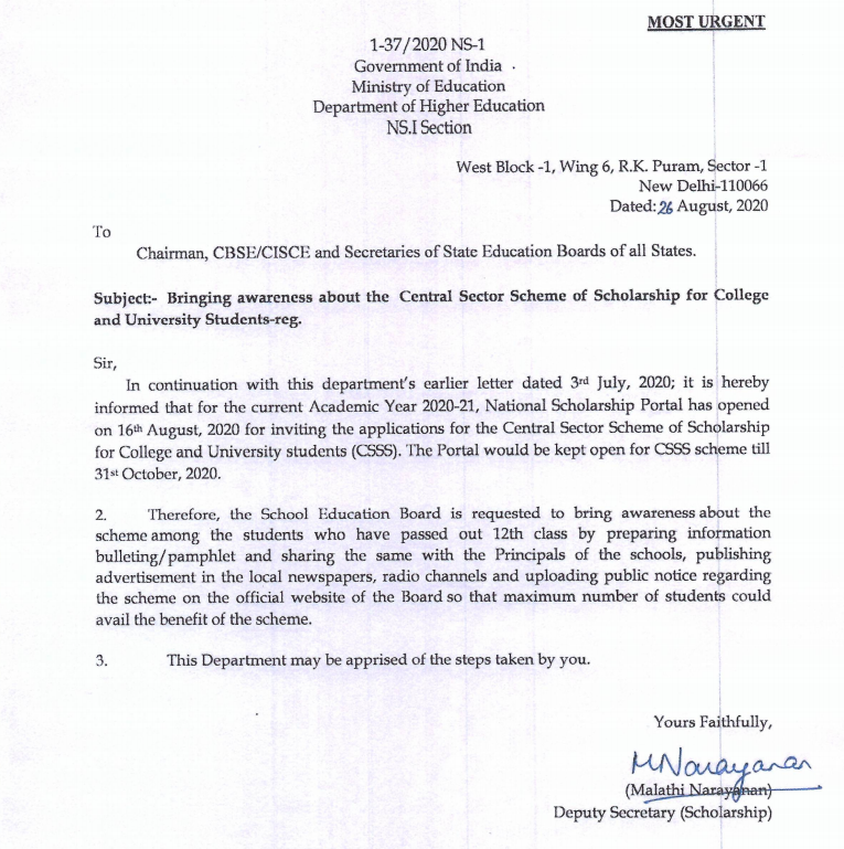 Central Sector Scheme of Scholarship